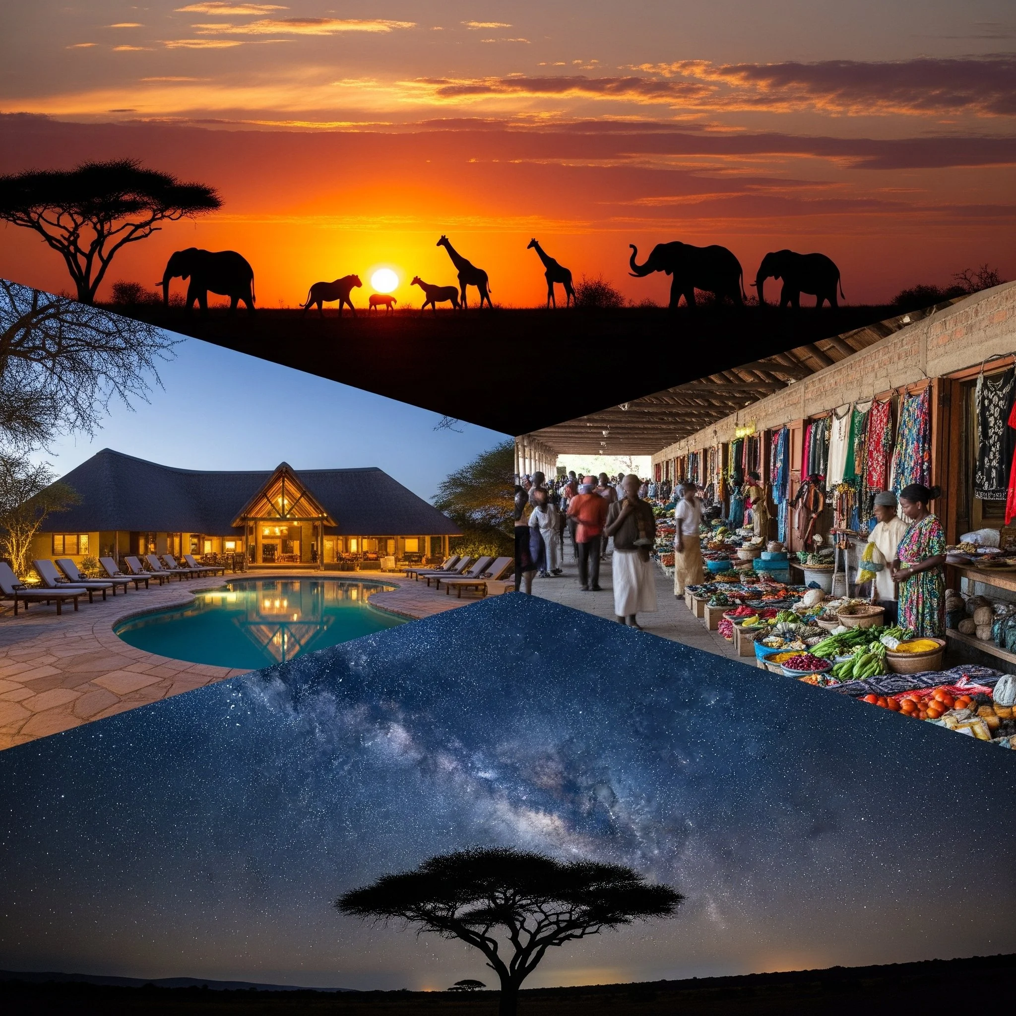 Beyond the safari, Africa is also home to vibrant cities, beautiful beaches, and much more. You can enjoy a sunset cocktail at a busy waterhole, get close to iconic wildlife like elephants, lions, and giraffes, and stay in world-class luxury hotels and resorts. Explore colorful markets and shop for unique crafts and mementos, or simply revel in the sight of a clear African night sky lit up by billions of stars.